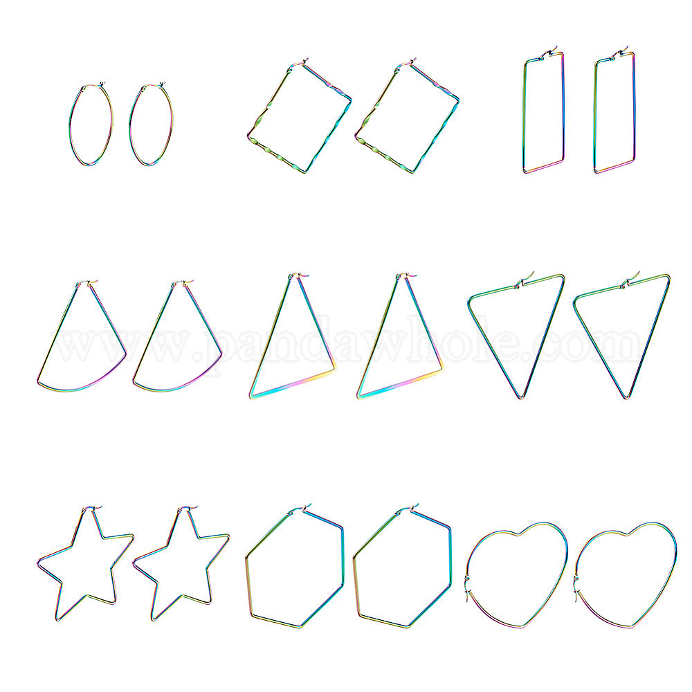 9 пары 9 стили 304 геометрические серьги-кольца из нержавеющей стали, гипоаллергенные серьги, разнообразные