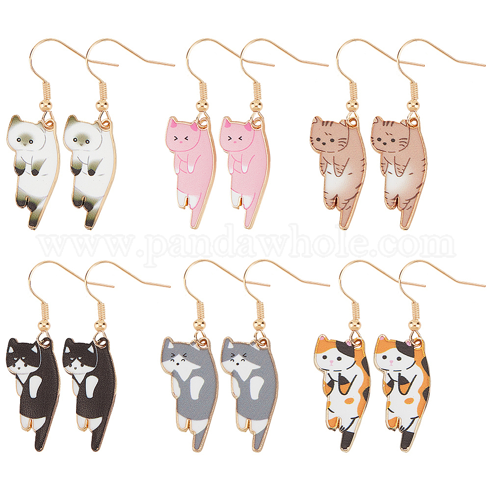 6 пары 6 цвета эмалевые серьги-подвески на тему кошек, украшения из легкого золотого сплава для женщин