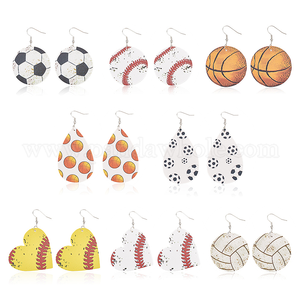 8 пары 8 стили бейсбольные, баскетбольные и волейбольные серьги-подвески из искусственной кожи, длинные серьги-подвески для женщин с платиновым железом и спортивной тематикой