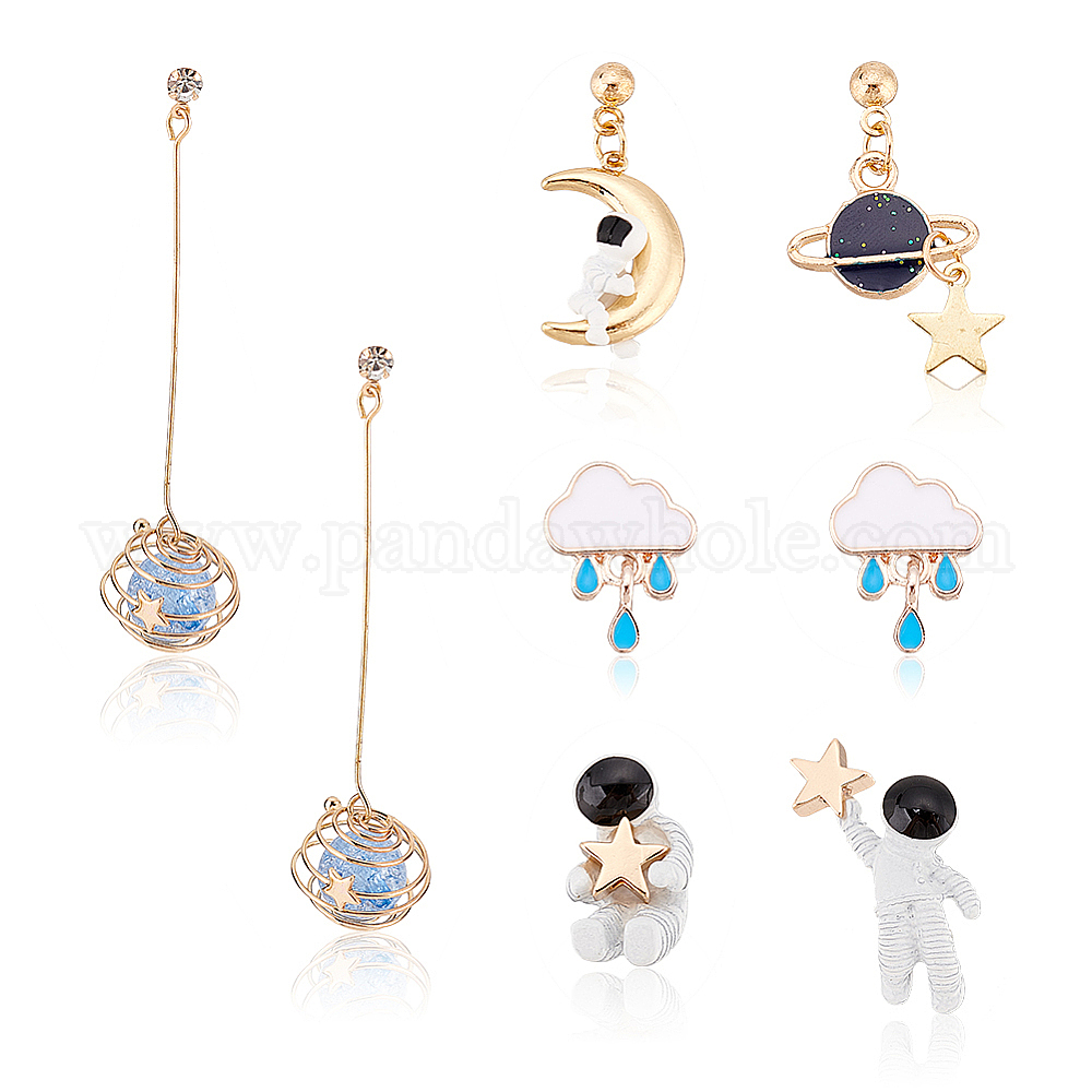 4 пары 4 комплект из эмалевых серег-гвоздиков в стиле космонавта, луны и звезд, серьги-подвески из латуни для женщин