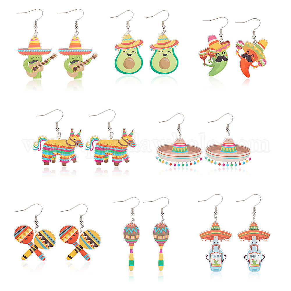 8 пары 8 стили акриловые серьги-подвески в виде кактуса, авокадо и лошади, ювелирные изделия Синко де Майо из платины и железа для женщин