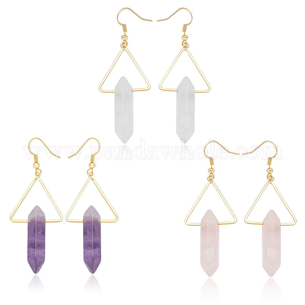3 пары 3 стильные серьги-подвески из натуральных смешанных драгоценных камней в форме треугольника и пули, золотые железные длинные серьги-капли для женщин