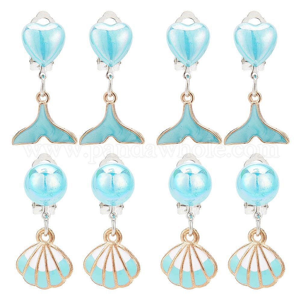 4 пара 2 стиль имитация ракушек эмалированные висячие серьги клипсы, украшения на тему океана из платинового сплава для женщин (02HCQQ)