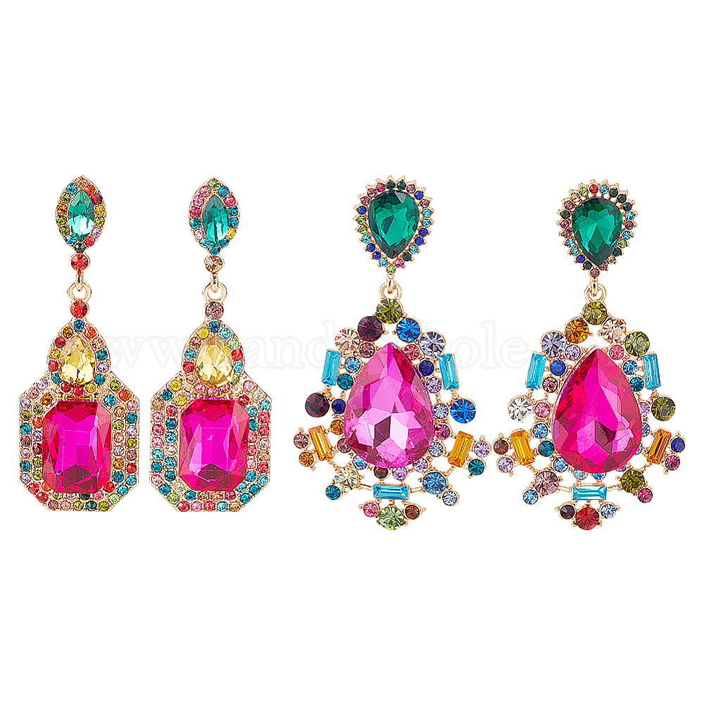 • Разноцветный 2 пары 2 серьги-гвоздики в форме капли и прямоугольника со стразами, длинные серьги-подвески из легкого золотого сплава для женщин, красочный, 66~72 мм, штифты : 0.6~0.8 мм, 1 пара / стиль