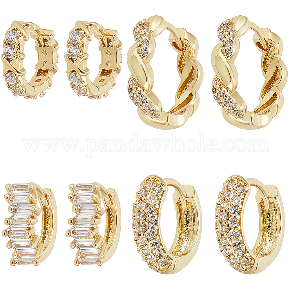 4 пары 4 стильные серьги-кольца в форме прямоугольника и витой веревки с прозрачным кубическим цирконием, украшения из латуни для женщин