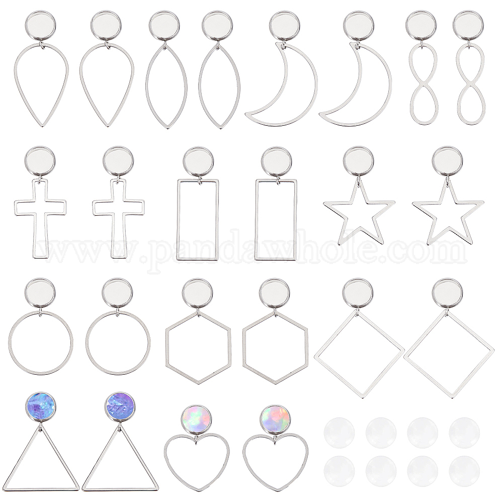 12 пары 12 стильные пустые серьги-гвоздики с прозрачным стеклянным куполом, треугольные, прямоугольные и каплевидные 304 серьги-подвески из нержавеющей стали для женщин