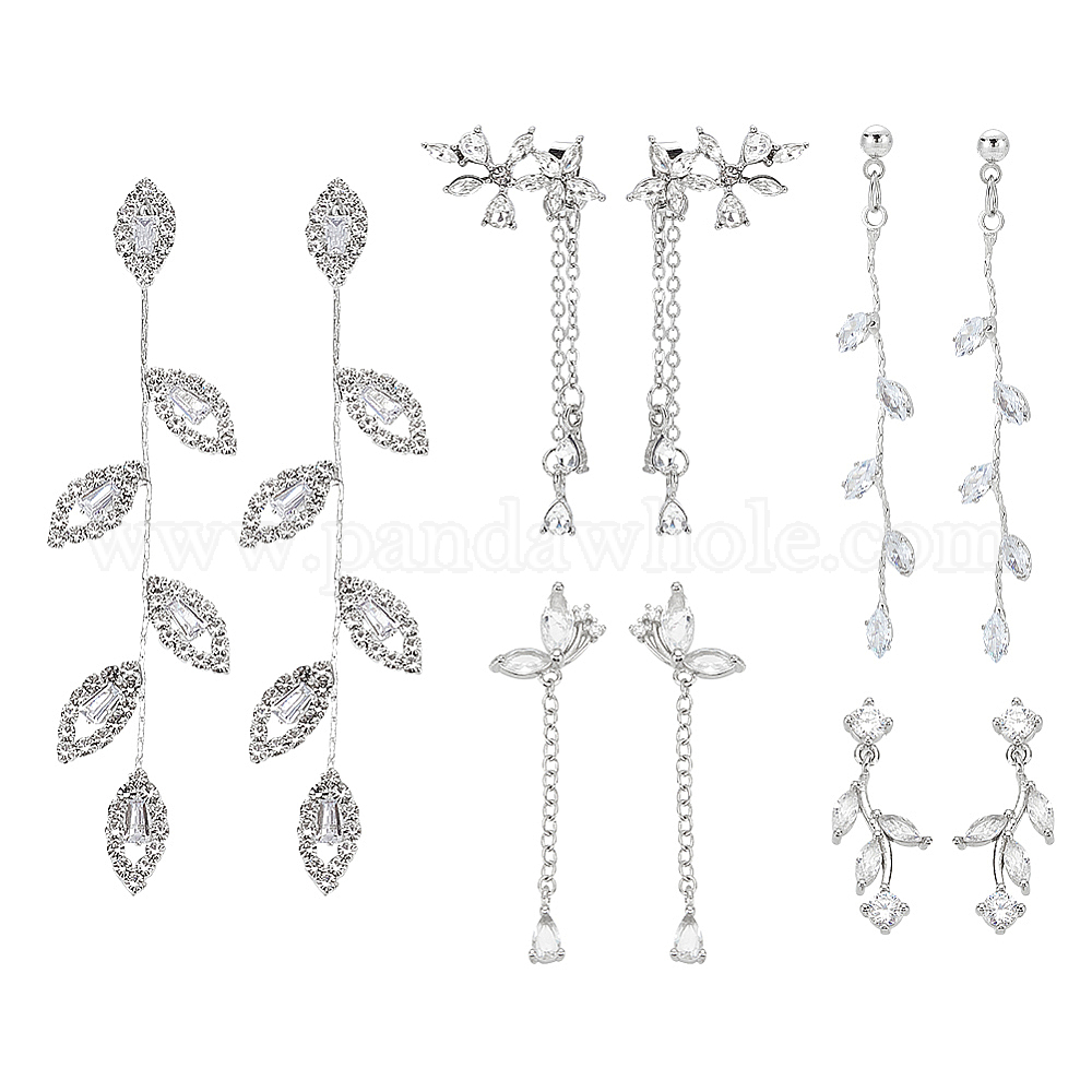 • Платина 5 пары 5 стили серьги-гвоздики с кристаллами и стразами в форме листа, серьги-кисточки из сплава с серебряными булавками для женщин, платина, 25~63 мм, штифты : 0.7~0.8 мм, 1 пара / стиль
