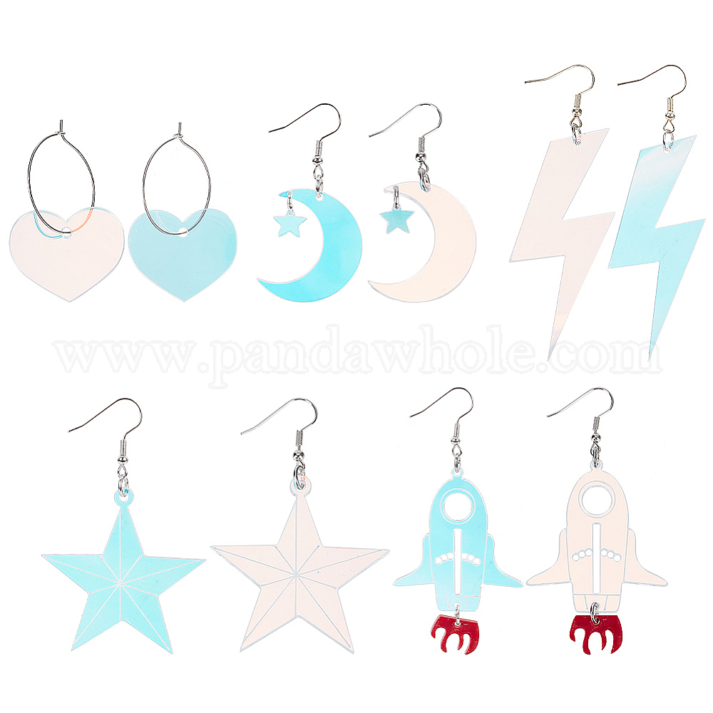 5 пары 5 стили акриловые серьги-подвески всех цветов радуги с железными штифтами, луна, звезда, ракета, сердце и молния