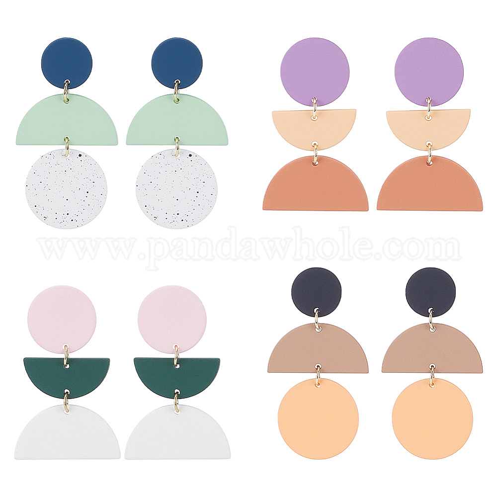 • (52) Непрозрачная лаванда 4 пары 4 стильных сережек-гвоздиков из полимерной глины с 316 штифтами из хирургической нержавеющей стали, овальные и полукруглые, разноцветные, 50~55x29.5~30 мм, 1 пара / стиль