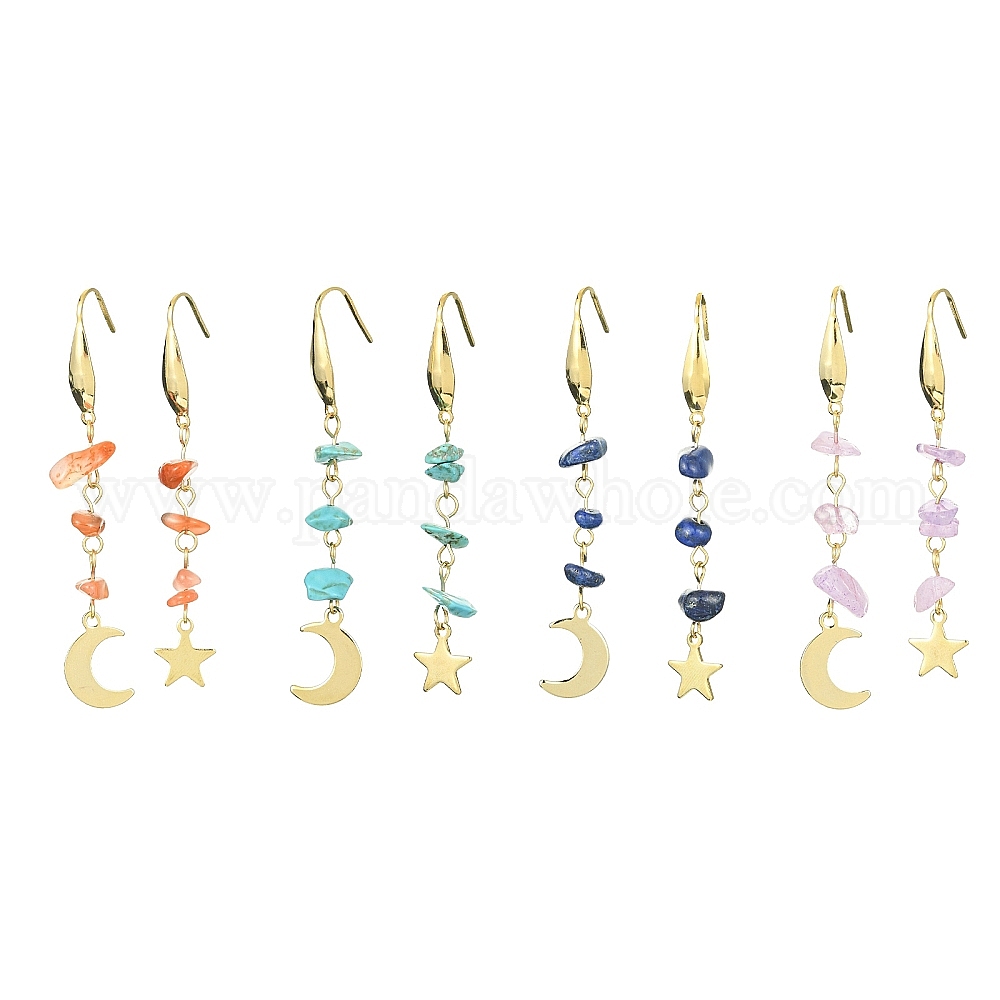 4 пары 4 стиль «луна и звезда» 304 серьги с подвесками из нержавеющей стали, женские серьги из бисера с драгоценными камнями