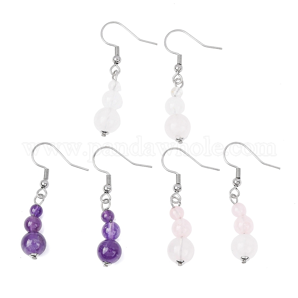 3 пары 3 стили серьги с подвесками из драгоценных камней, с 304 швензами из нержавеющей стали, круглые, цвет нержавеющей стали