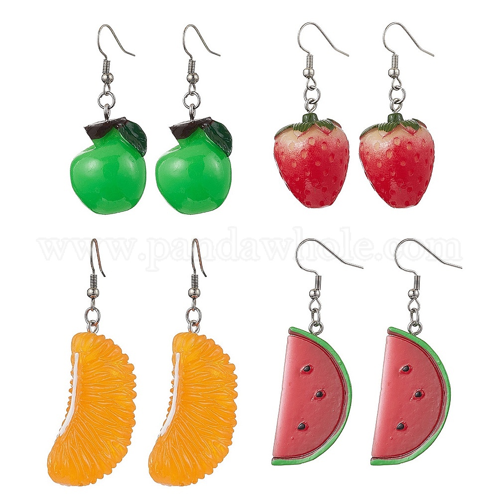 4 пары 4 стили серьги-подвески в виде фруктов из смолы, с 316 хирургическими крючками для серег из нержавеющей стали (02XQC8)