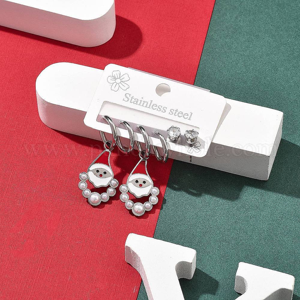 3 пары 3 стили рождество 304 наборы из сережек-колец и гвоздиков из нержавеющей стали для женщин, с эмалью, кубическим цирконием, искусственным жемчугом и стразами