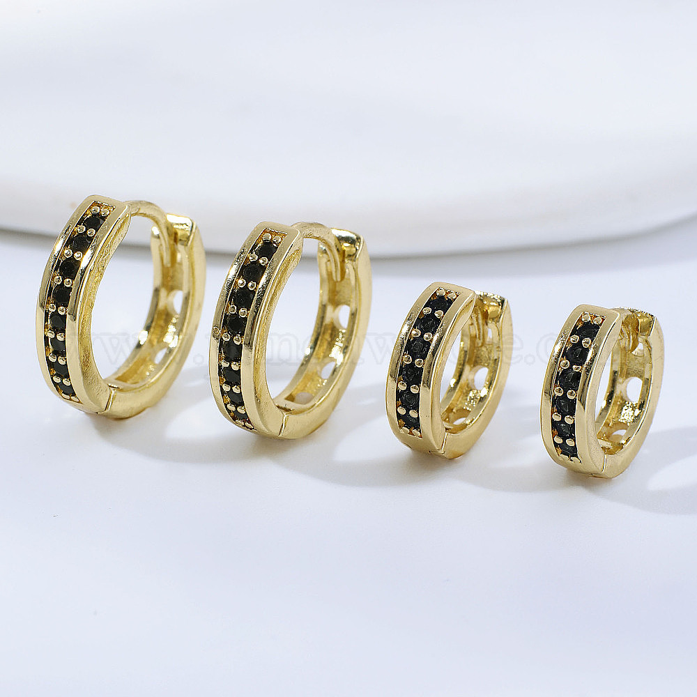 • Синий 2 пары элегантных винтажных латунных серег-колец с микропаве из кубического циркония, золотые, синие, 15~11x3 мм