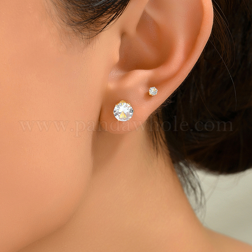 12 шт. элегантные серьги-гвоздики из нержавеющей стали с прозрачным кубическим цирконием