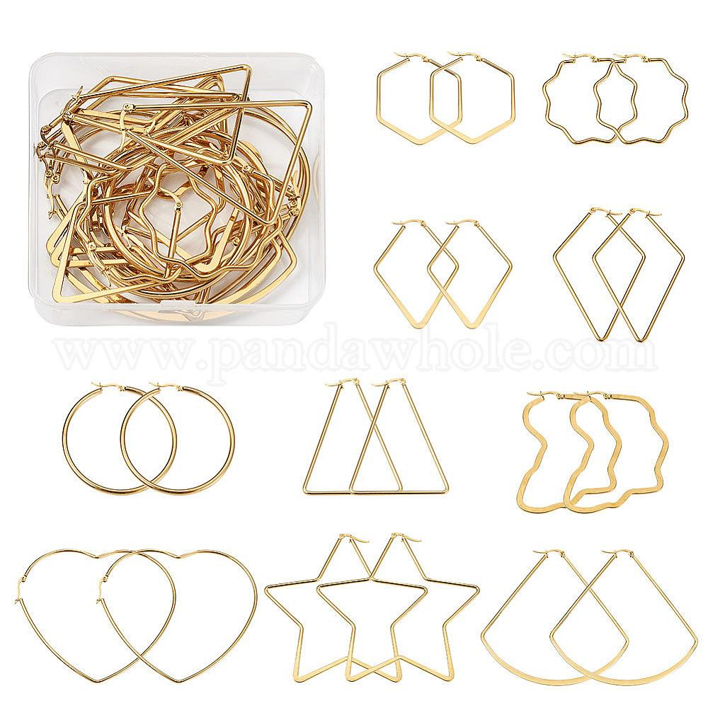 10 пары 10 стили 201 & 304 большие серьги-кольца из нержавеющей стали, гипоаллергенные серьги, разнообразные