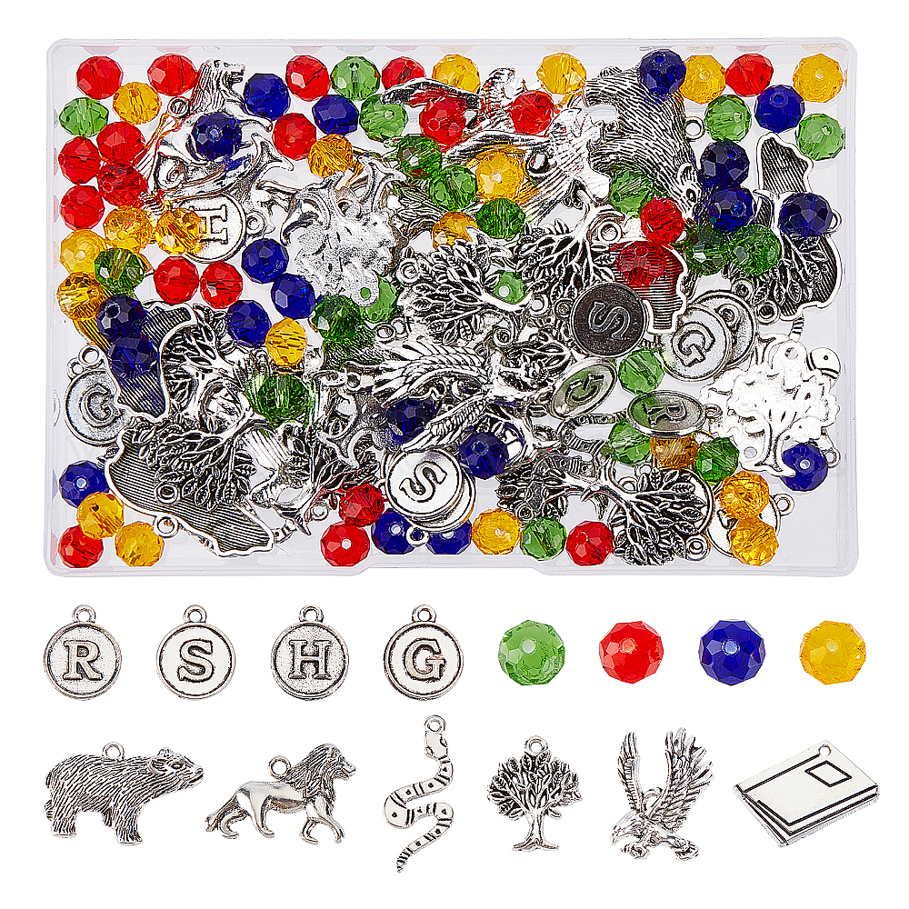 176Набор из бусин и подвесок для самостоятельного изготовления украшений, в том числе стеклянные бусины рондель, подвески из сплава животных, деревьев и книг (029PAC)