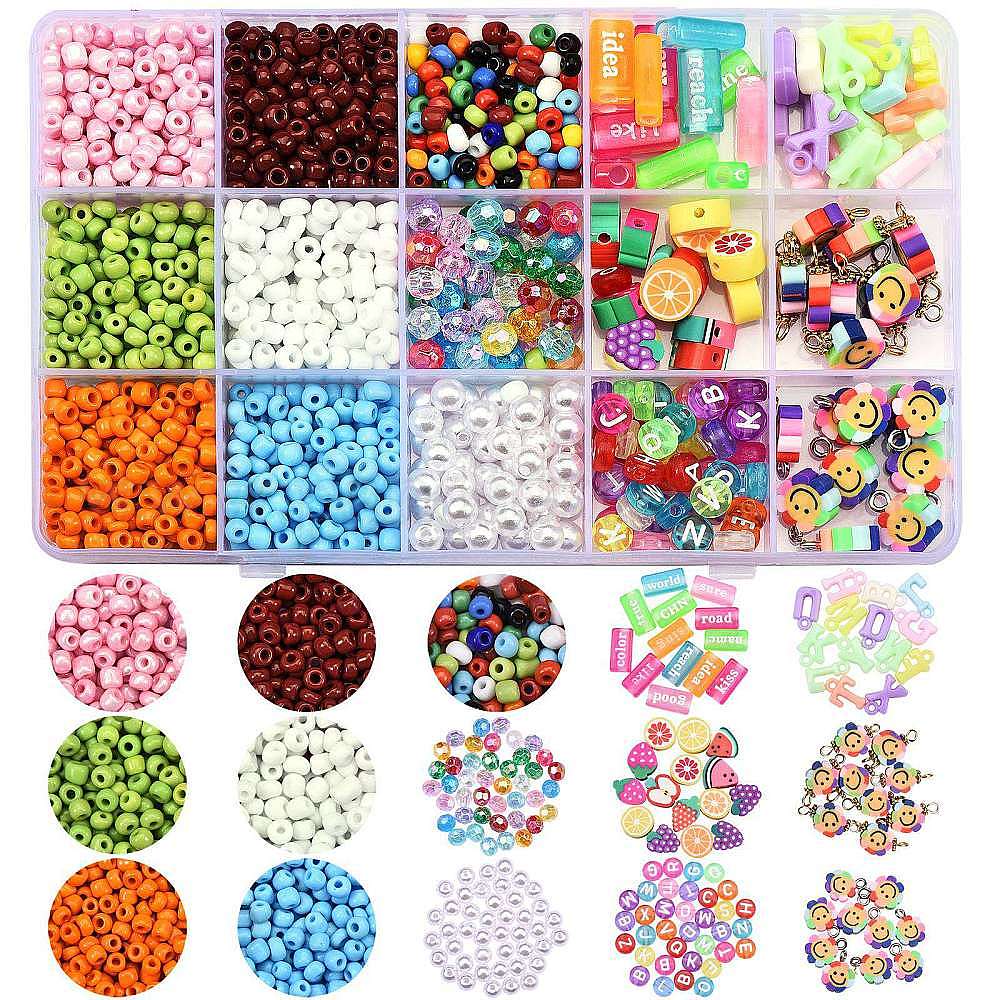 995 набор бусинок, шармов и звеньев для изготовления украшений своими руками, в том числе акриловые бусины и подвески, бусины, звенья и подвески из полимерной глины, АБС-пластик и стеклянный бисер