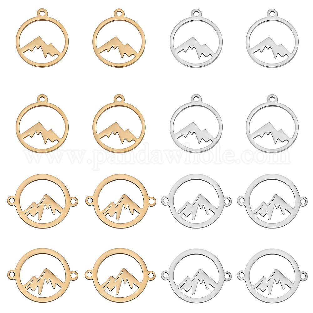 • Золотой & Цвет Нержавеющей Стали Набор для поиска поделок для изготовления ювелирных изделий, включая 201 подвески из нержавеющей стали и соединительные звенья, кольцо с горой, золотые и нержавеющая сталь цвет, 16 шт / коробка