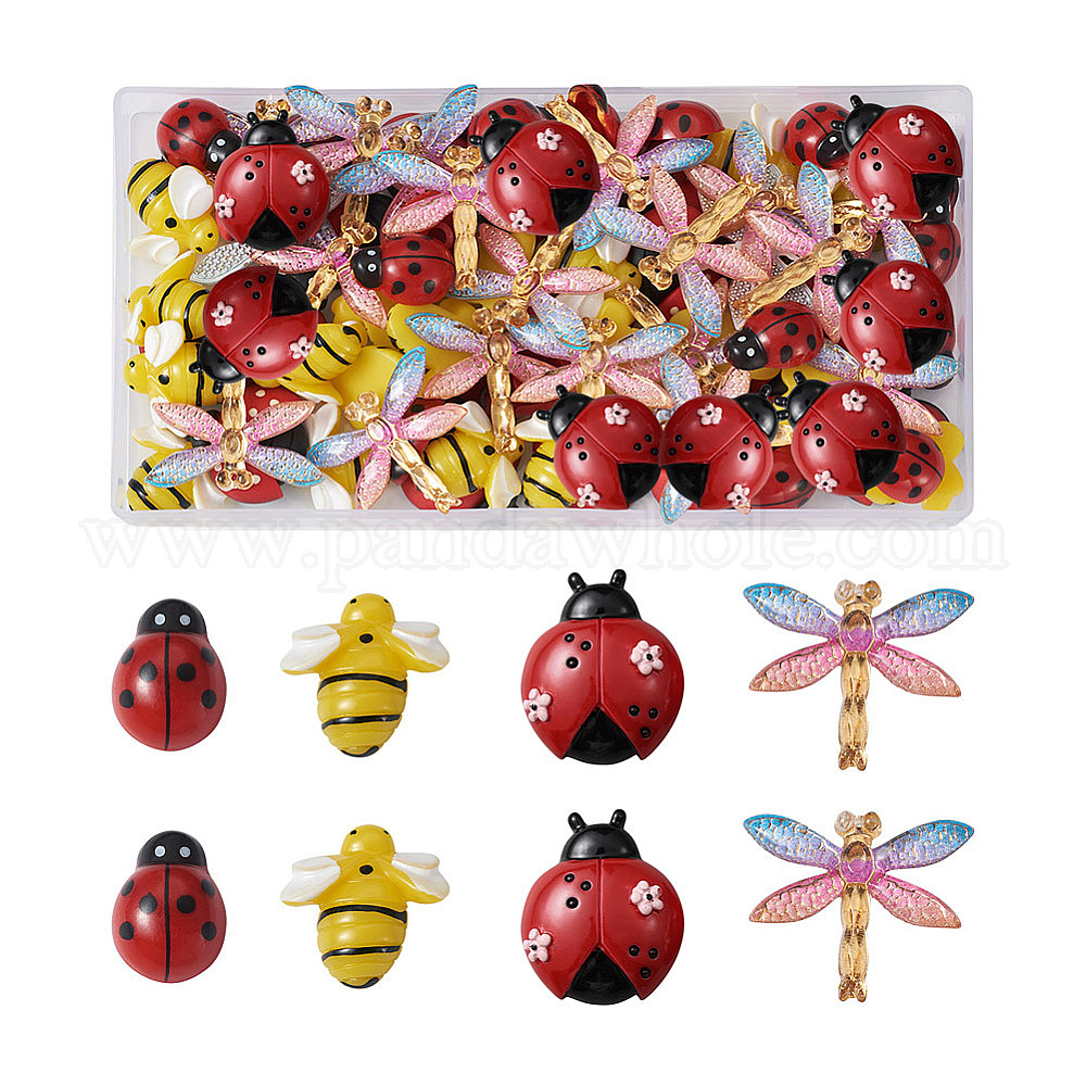 Набор для поиска поделок для изготовления ювелирных изделий, включая кабошоны и подвески из непрозрачной смолы и пластика, божья коровка и стрекоза и пчелы (02CKP8)