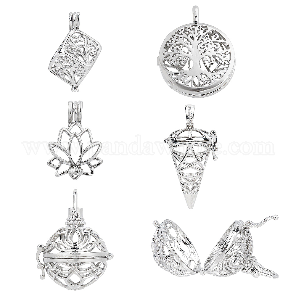 • Платина 10шт 5 стили ювелирные изделия изготовление наборов, в том числе латунные подвески с полыми клетками и подвески из сплава и латуни, для изготовления ожерелий с диффузором, разнообразные, платина, 25~37x17.5~29x7.5~24 мм, отверстие : 2~6.5x2~6 мм, 2 шт / стиль