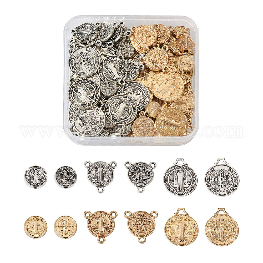 Наборы для самостоятельного изготовления религиозных украшений, в том числе плоские круглые с бусинами из сплава Святого Бенедикта, подвесными и соединительными звеньями