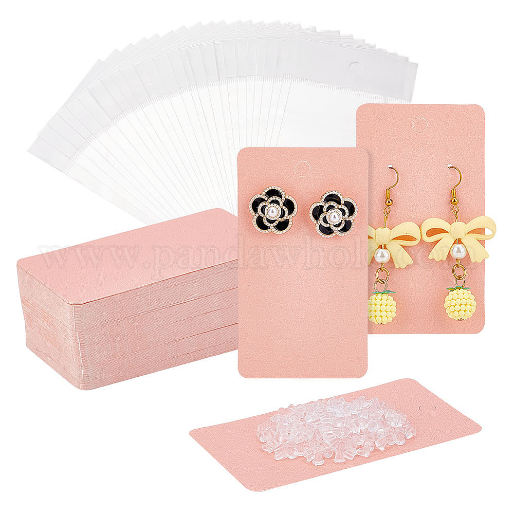120шт. пустая крафт-бумага держатель для сережек для демонстрации сережек, с 240пластиковыми ушными гайками и 120целлофановыми пакетами