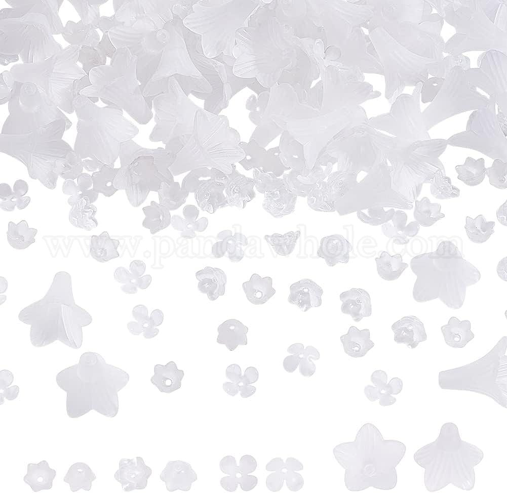 • Прозрачный 200шт 4 стильные стеклянные бусины, окрашенные распылением, и акриловые колпачки для бусин, цветок, прозрачные, 7~21.5x11.5~22x4.5~21 мм, отверстие : 1.2~1.5 мм, 50 шт / стиль