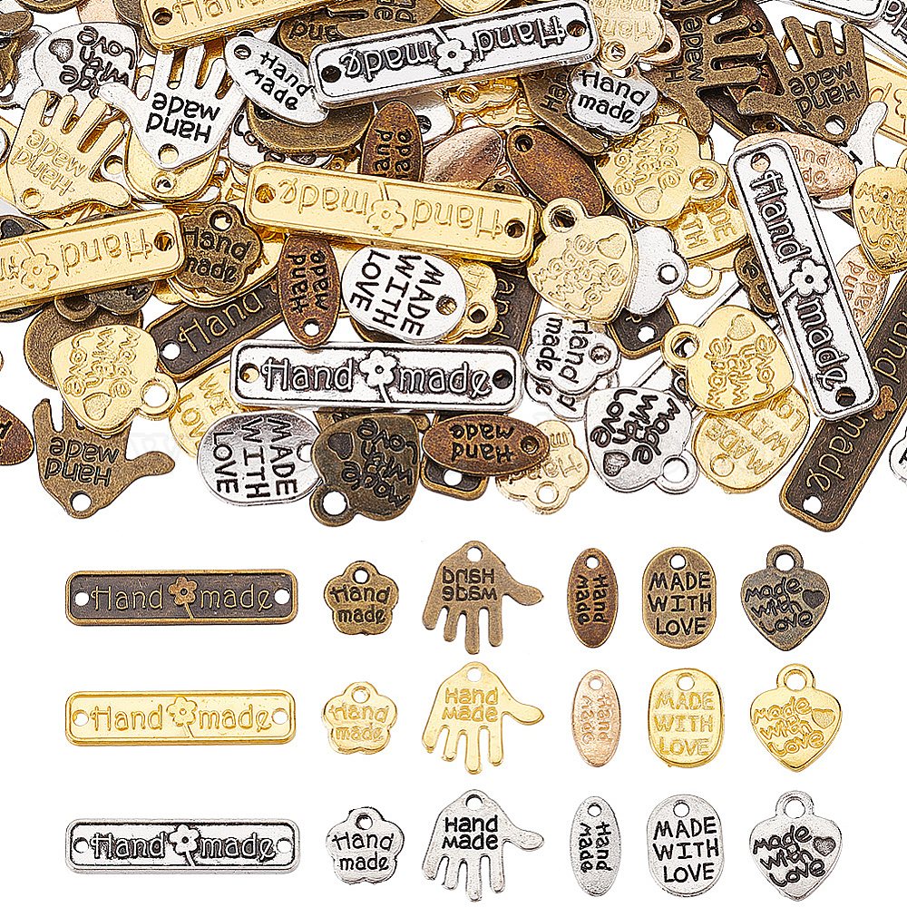 Набор для поиска поделок для изготовления ювелирных изделий, в том числе 216 шт. 12 стильные подвески из сплава и подвески для разъемов, овал и цветок и прямоугольник и ладонь и сердце со словом
