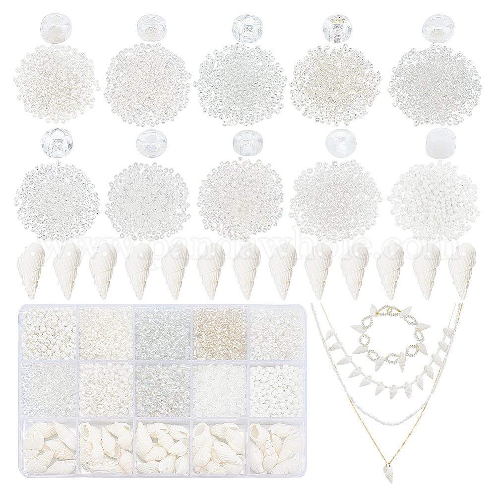 Набор для изготовления ювелирных изделий из бисера своими руками, в том числе круглые стеклянные семена и натуральные бусины из трубной раковины (02EYBE)