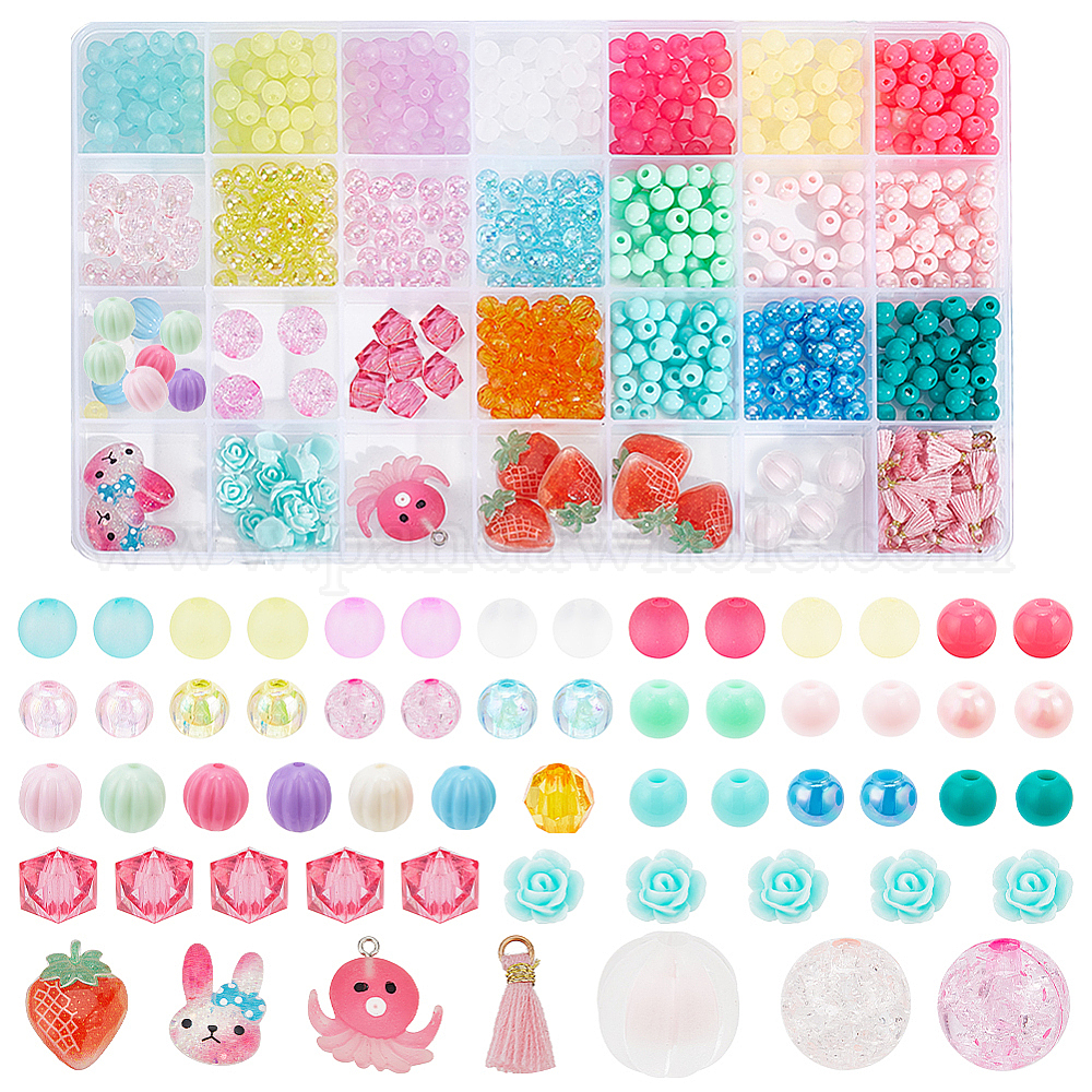 Наборы для изготовления ювелирных изделий своими руками, включая круглые, квадратные и тыквенные акриловые бусины, кабошоны из смолы и пластика в виде цветов, клубники и кролика, кулон с кисточками из осьминога и поликоттона