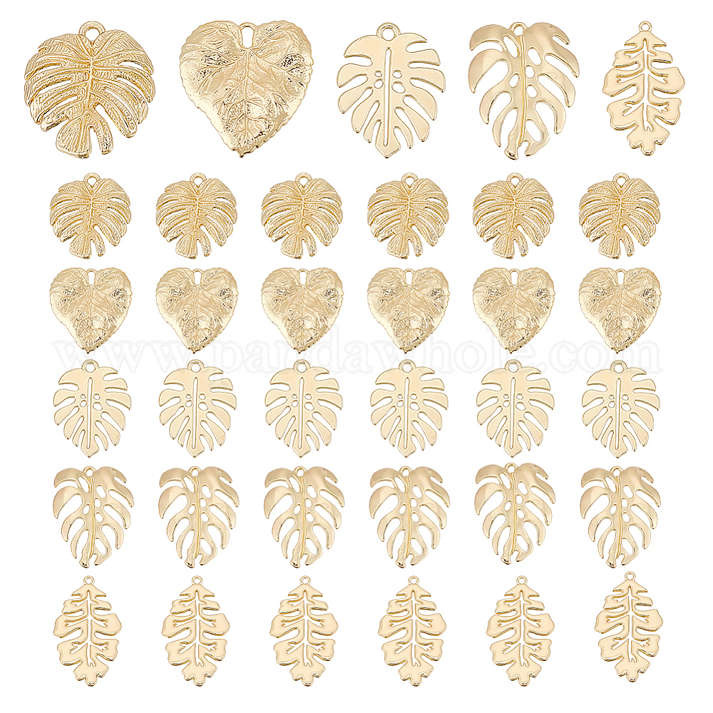Наборы подвесок из листьев монстеры, в том числе 35шт 5 стиль железа и сплава и 304 кулон из нержавеющей стали (02F2P4)