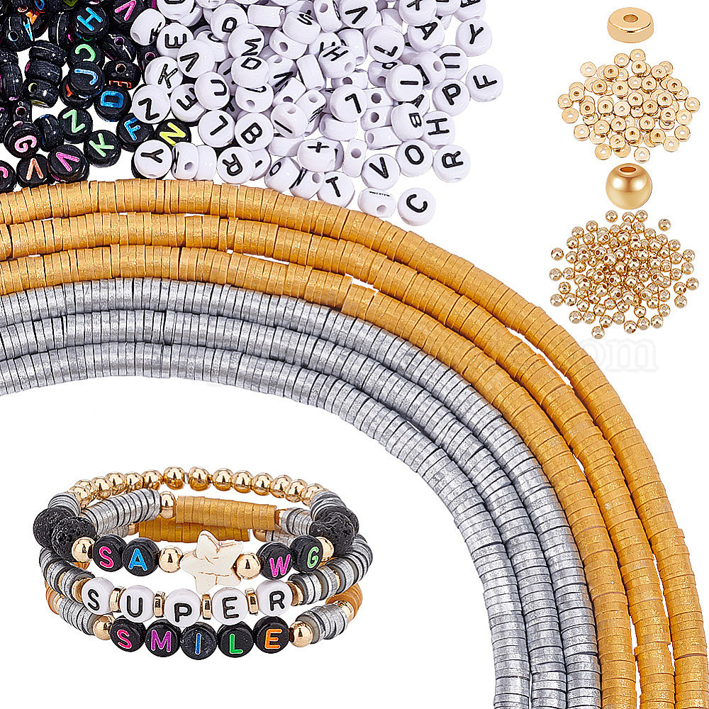 Набор для самостоятельного изготовления бисерных украшений с буквами, включая хейши из полимерной глины, пластиковые и акриловые плоские круглые бусины