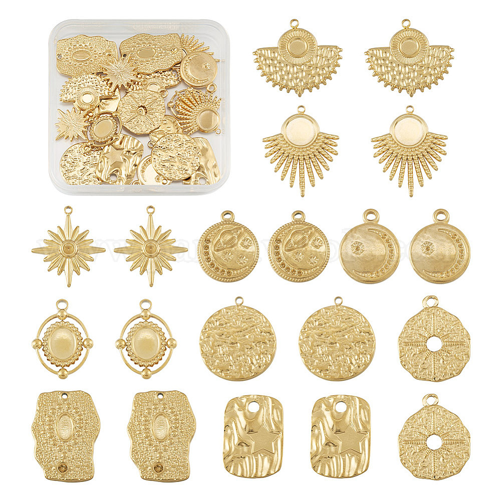 Набор для поиска поделок для изготовления ювелирных изделий, в том числе 304 подвески из нержавеющей стали, оправы кабошон и оправы со стразами, веерообразный и прямоугольный и овальный и звездообразный и плоский круглый