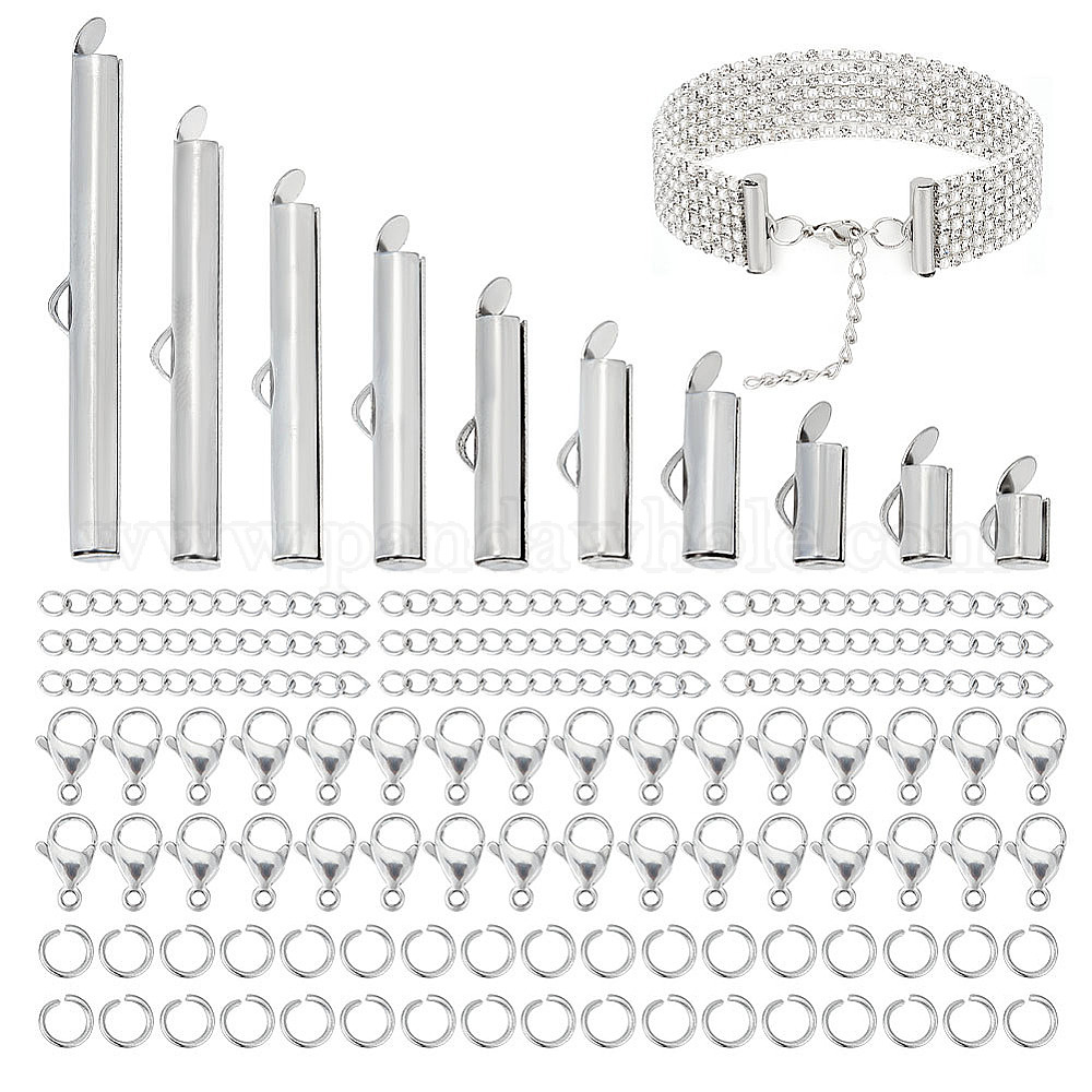 Набор для поиска поделок для изготовления ювелирных изделий, включая 304 слайд из нержавеющей стали на концевых застежках, открытые переходные кольца и концевые цепи и застежки-лобстеры