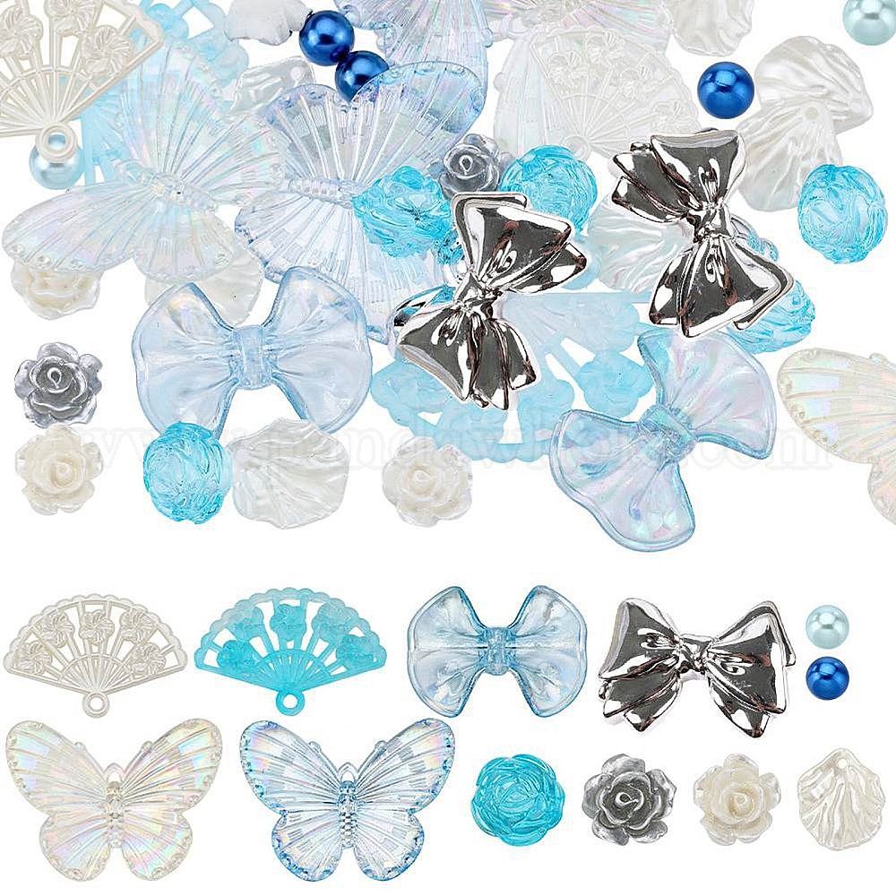 Набор для поиска поделок для изготовления ювелирных изделий, в том числе пластиковый лист, пластиковая бабочка и акриловые подвески-веера, акриловый цветок, кабошоны из пластикового мишки