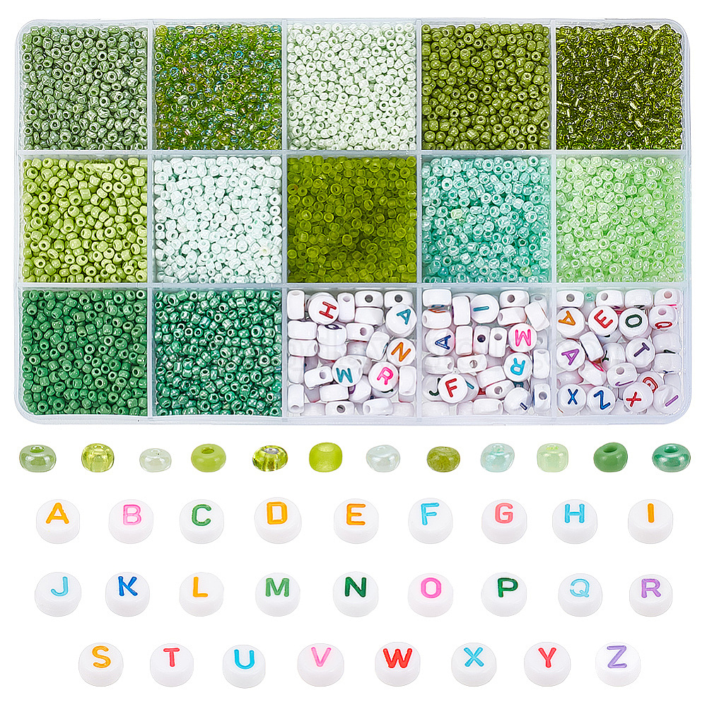 Набор для изготовления ювелирных изделий из бисера своими руками, включая блестящие стеклянные бусины 156g и акриловые бусины с буквами (02JR2B)