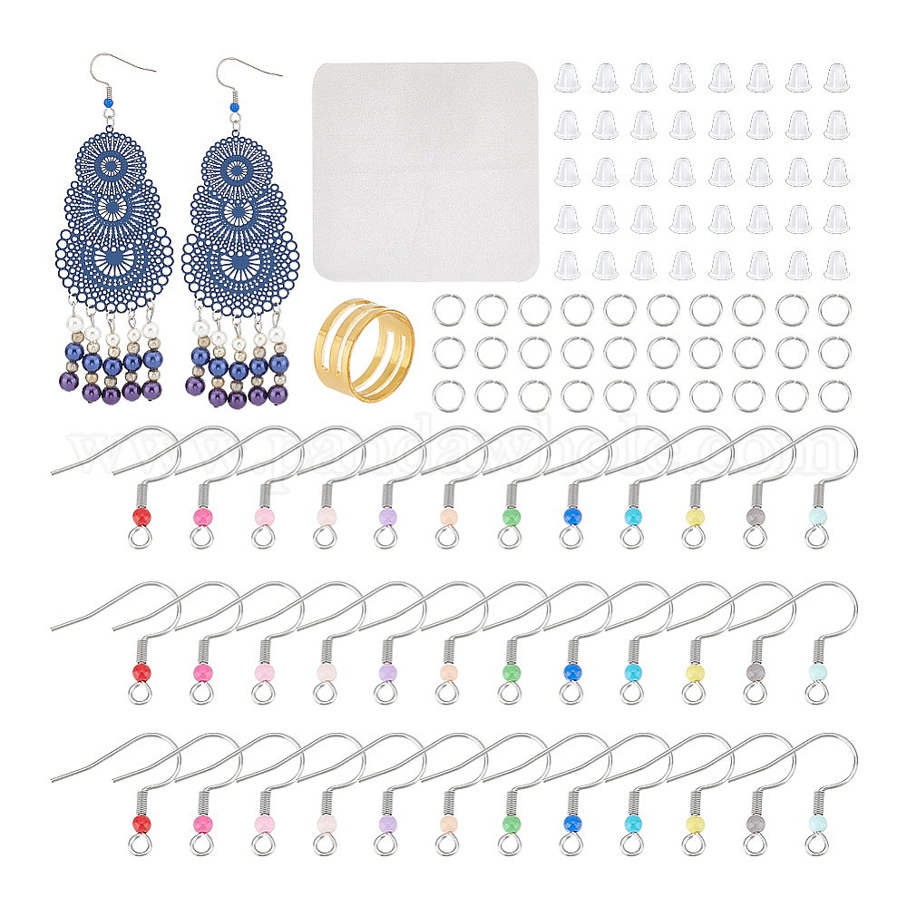Набор для изготовления ювелирных изделий своими руками, в том числе 304 крючки для серег и прыгуны из нержавеющей стали, ткань для чистки замшевого волокна, пластиковые гайки для ушей, медные кольца