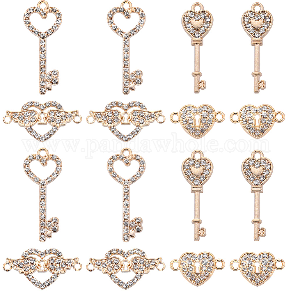 Набор для поиска поделок для изготовления ювелирных изделий, включая подвески и подвески со стразами из сплава, замок-сердце и ключ-отмычка (02N361)