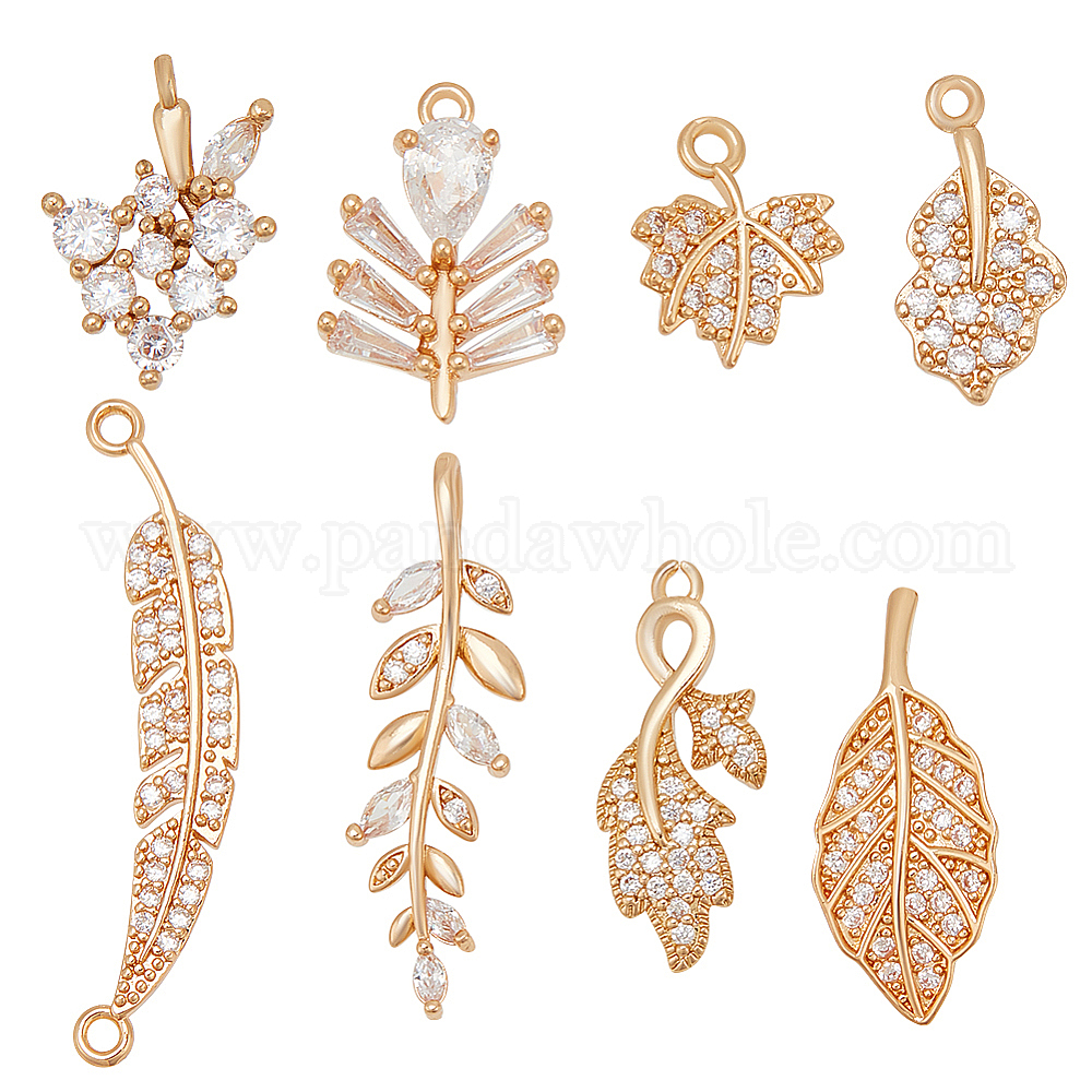 Набор для самостоятельного изготовления украшений в форме листа, включая латунь с подвесками из прозрачного циркония и соединительными звеньями (02NZK7)