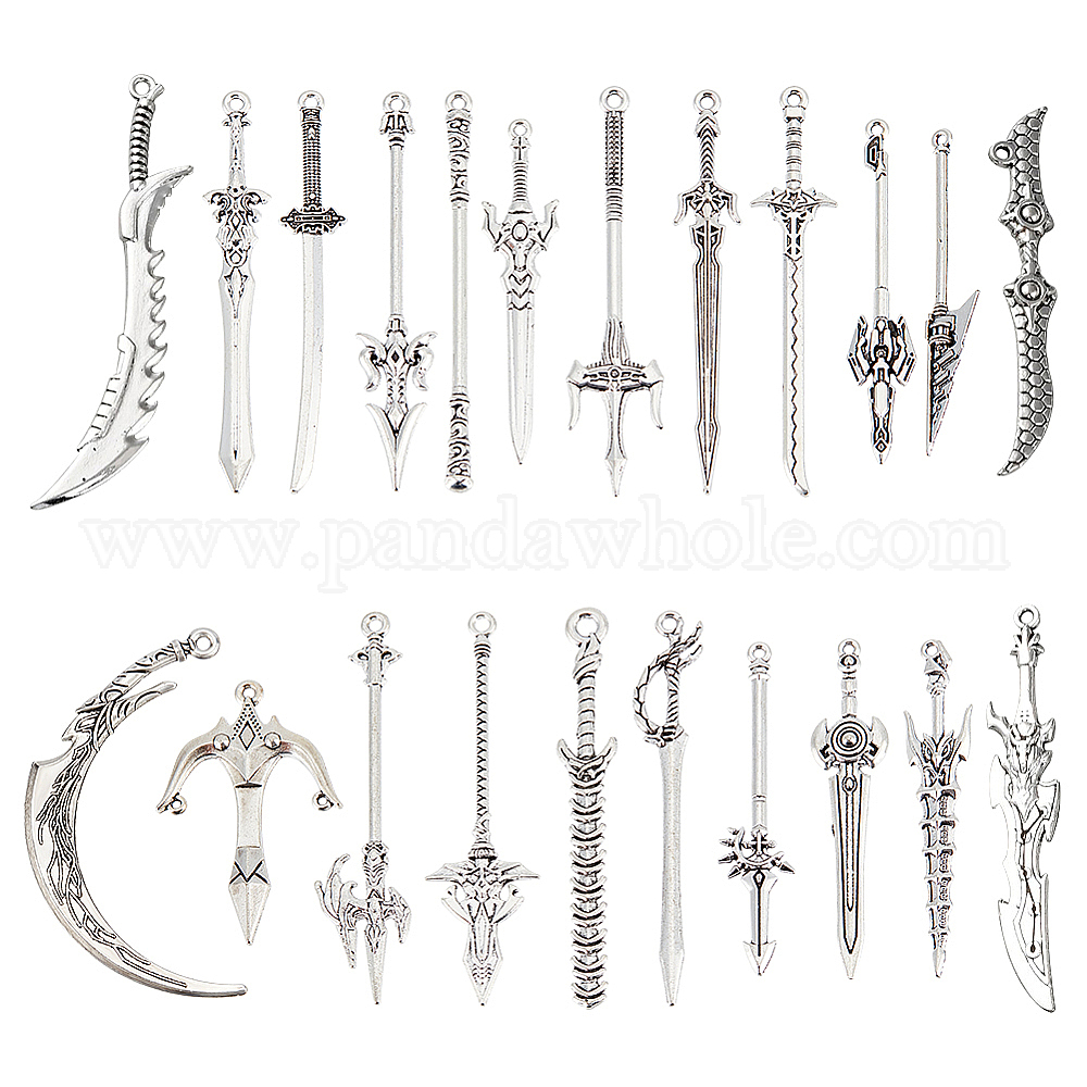 Набор для поиска поделок для изготовления ювелирных изделий, включая звенья и подвески для люстр из сплава в тибетском стиле, нож, луна, меч и вилка