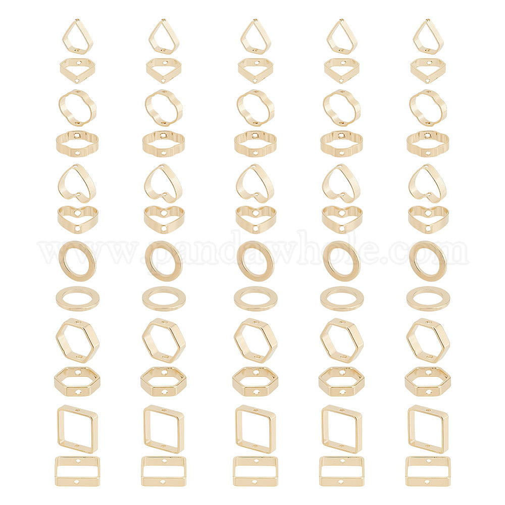 Набор для поиска поделок для изготовления ювелирных изделий, включая 60шт. 6 латунную рамку для бусин и соединительные кольца, квадрат, цветок, сердце, шестиугольник и кольцо, без кадмия и без свинца (02P815)
