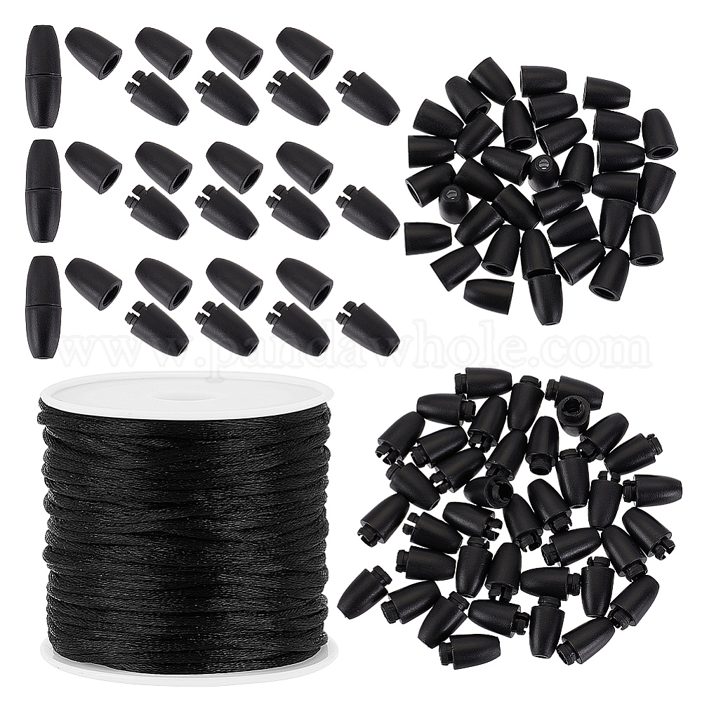 • Черный Наборы для изготовления ювелирных изделий своими руками, включая нейлоновые плетеные нити, пластиковые застежки отколовшиеся, чёрные, Шнур: 1.5 мм, около 16.4 ярдов (15 м) / мешок