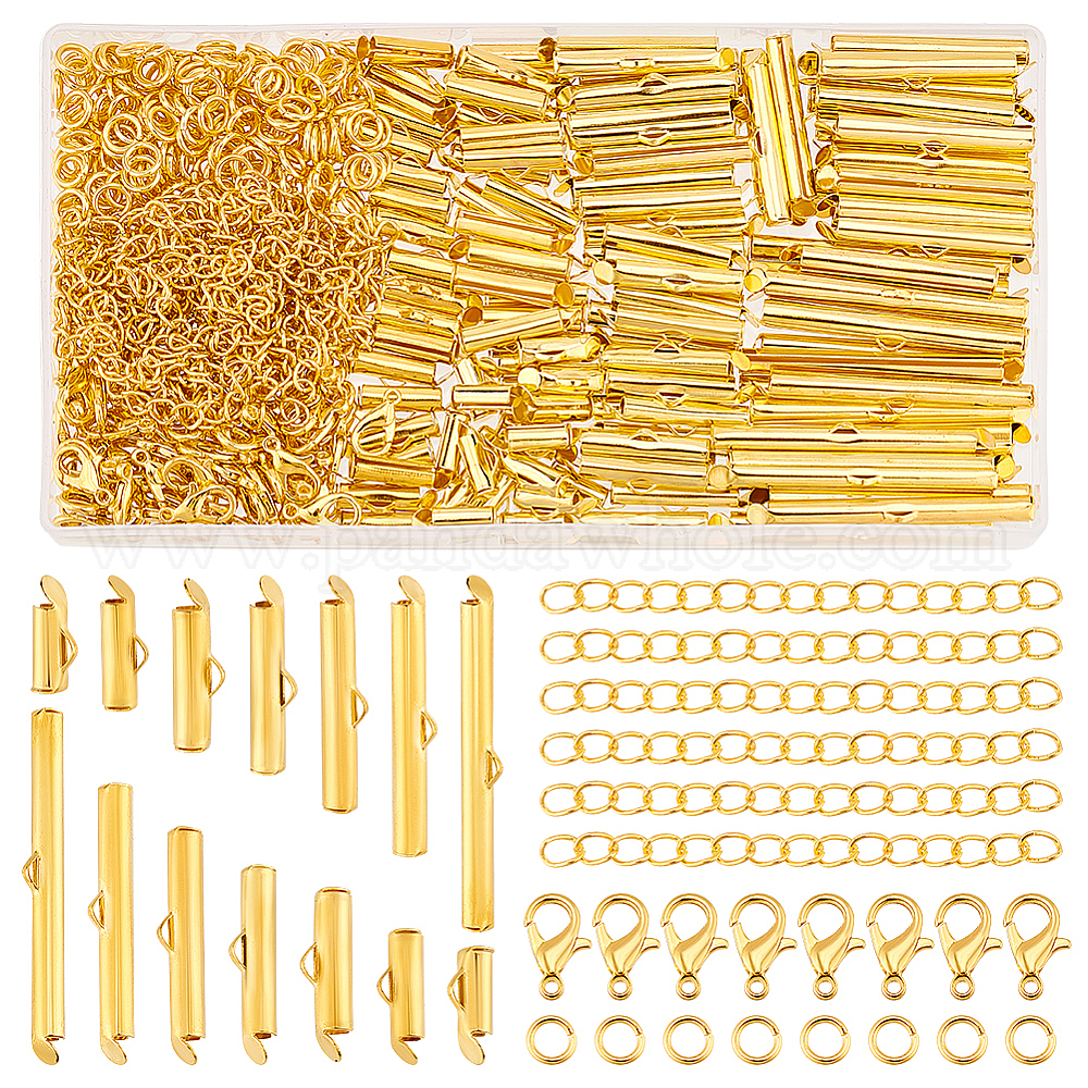 Наборы для изготовления ювелирных изделий своими руками, включая железные направляющие на трубках с концевыми застежками и удлинитель цепи, Перейти латунные, Карабин-лобстер из цинкового сплава