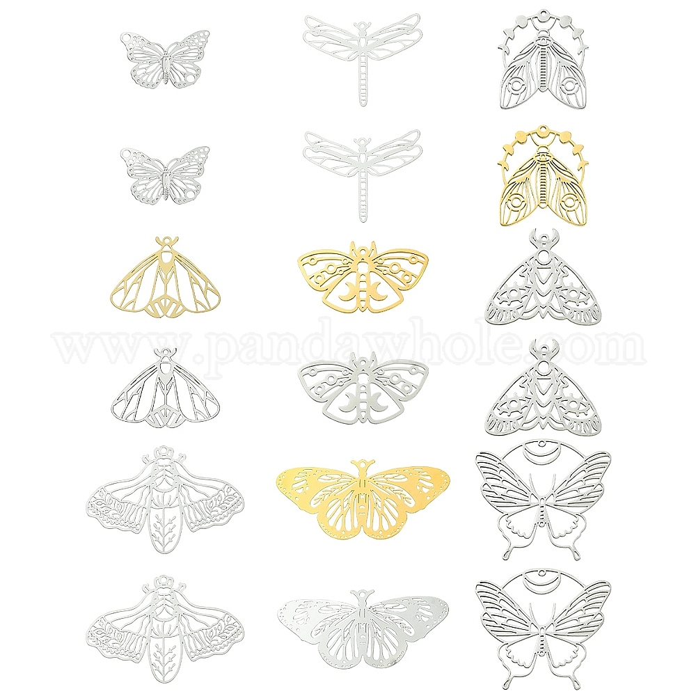 • Золотой & Цвет Нержавеющей Стали Набор для поиска ювелирных изделий из нержавеющей стали с насекомыми своими руками, включая филигранные подвески и подвески, золотые и нержавеющая сталь цвет, 12x18x0.4 мм, отверстие : 1.5 мм