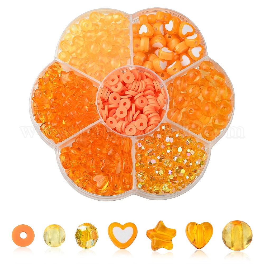 • Темно-Оранжевый Наборы для изготовления украшений из бисера своими руками, включая бусины из акрила и полимерной глины, темно-оранжевый, 5~9x6~9.5x1~8 мм, отверстие : 1~2.5 мм, 375 шт / коробка