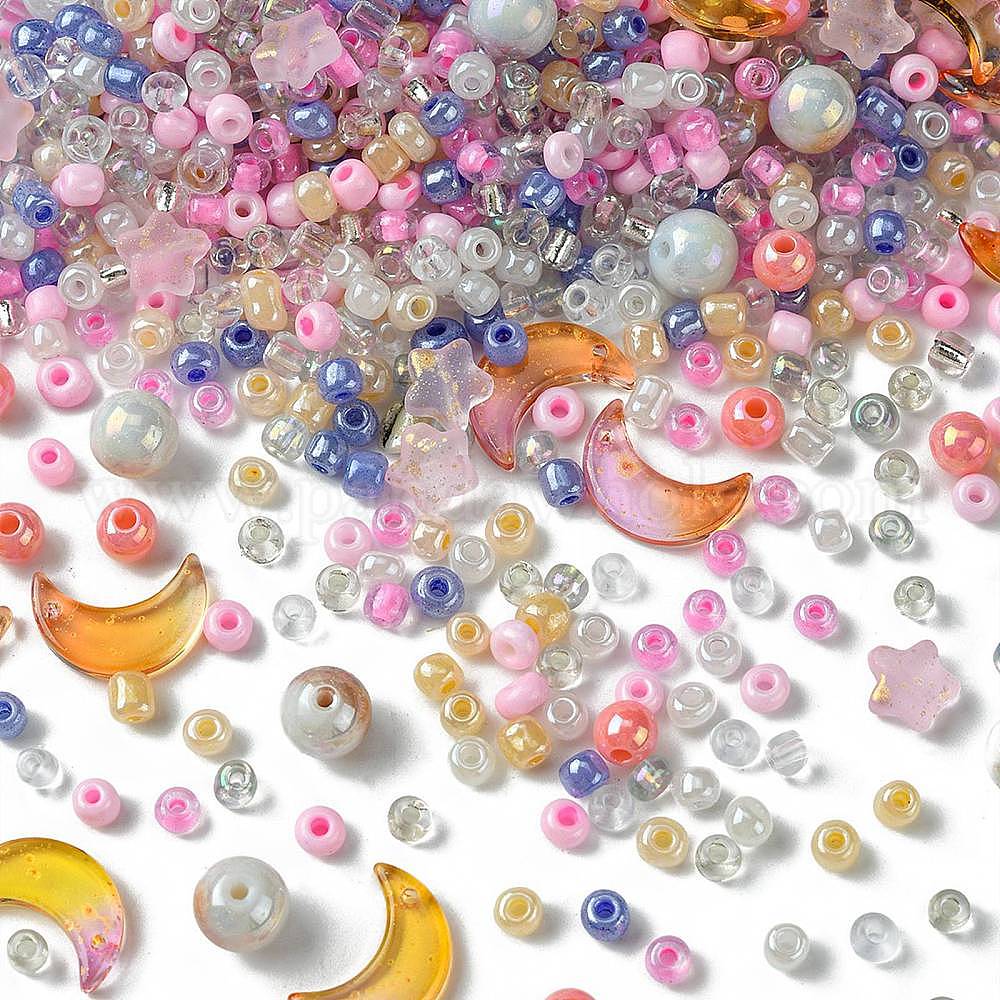 • Pink Наборы для изготовления украшений «луна и звезды» своими руками, включая стеклянные бусины и подвеску, Акриловые бусины, розовые, 4 мм, отверстие : 1.5 мм