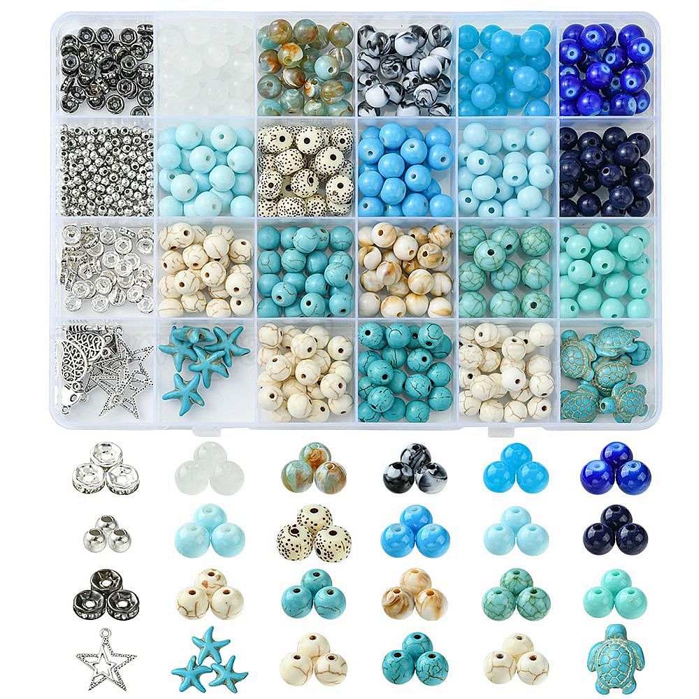 Набор для поиска поделок для изготовления ювелирных изделий, включая круглые бусины из синтетического смешанного камня, пластика, стекла и акрила, Подвески из сплава