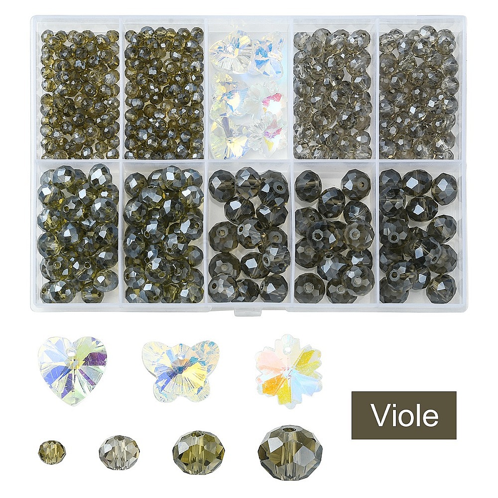 • (52) Непрозрачная лаванда Набор для поиска ювелирных изделий из стеклянных бусин и стеклянных стразов своими руками, разноцветные, 4~14x4~15x3~8 мм, отверстие : 0.4~1.6 мм