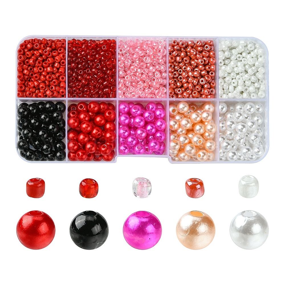 • Красный Наборы бисера своими руками, Включая бусины из искусственного жемчуга из АБС-пластика, Бисер из стекла , красные, 3~6x2~5.5 мм, отверстие : 0.8~2 мм